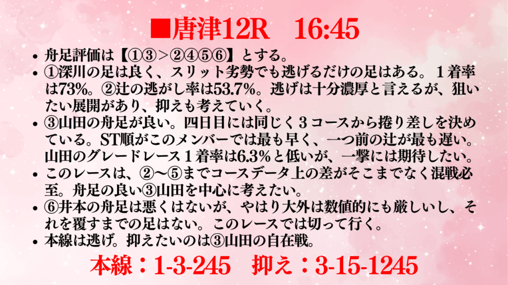 舟券の難しさを改めて垣間見たレースとなりました。