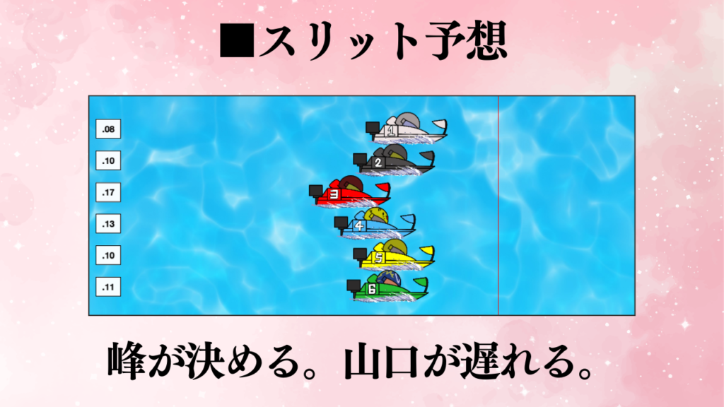そこに来て2号艇西山の逃がし率は68.6%だ。これはかなり高い数値となっており、西山が峰の逃げを後押しする形となる。