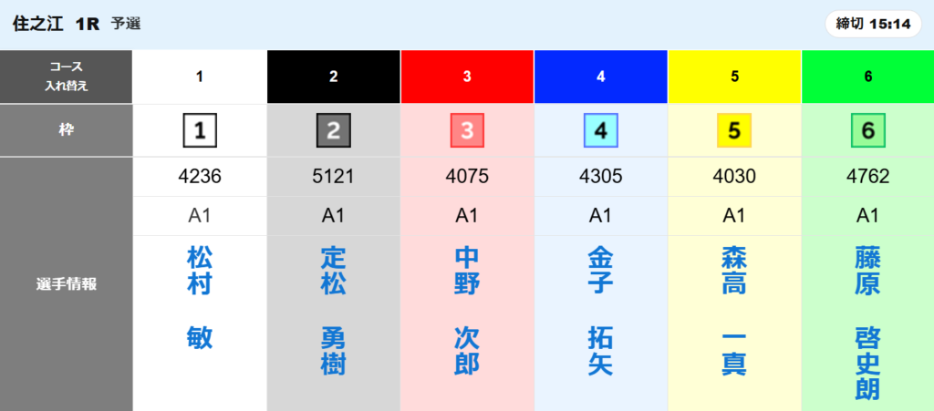 今日は、本日より開催される住之江G1から1Rを選定して予想していきたいと思います。