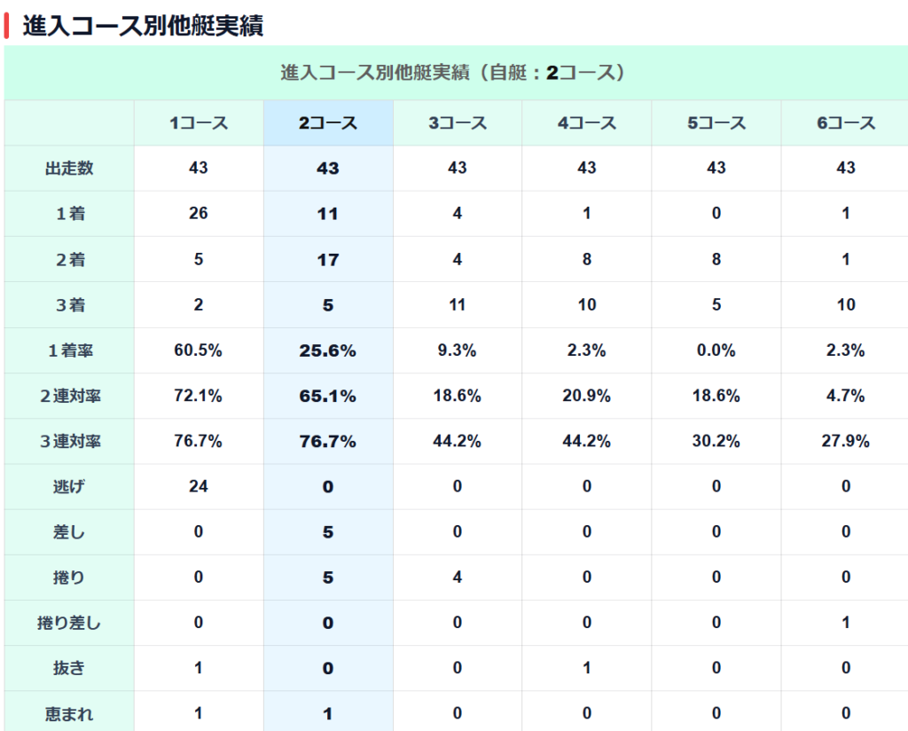②定松選手の逃がし率も60%と平均値より高く、このレースは逃げに絞って狙っていきたい。定松選手の2コース時は結構握るイメージがあるのでそこが怖いが、それを考えてもこのレースで狙いたい展開を考えれば勝負できると思っているので好材料としておく。