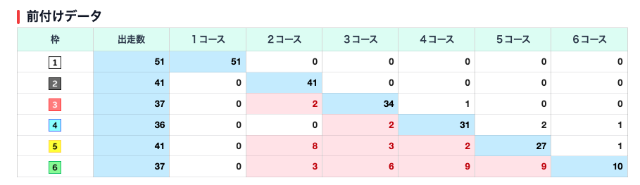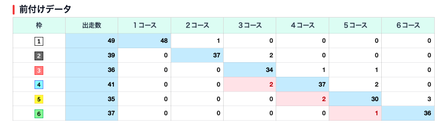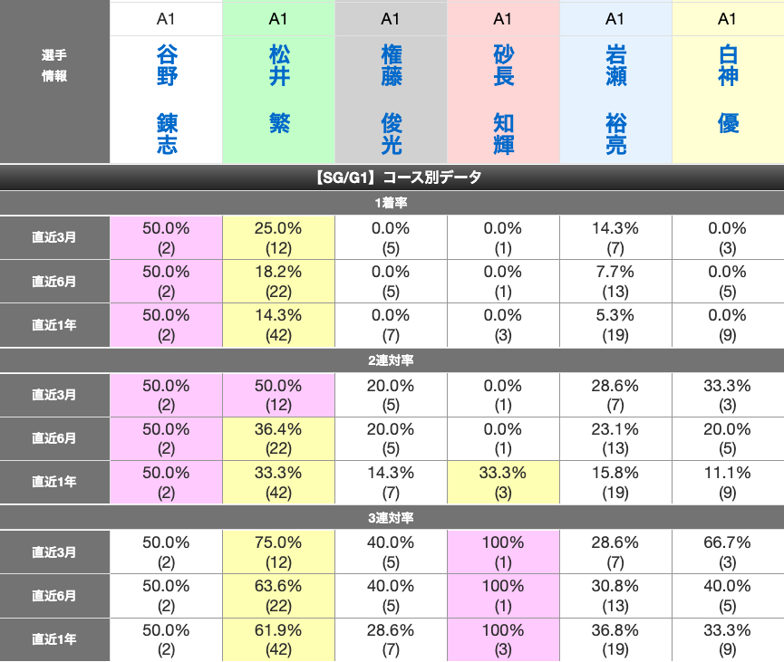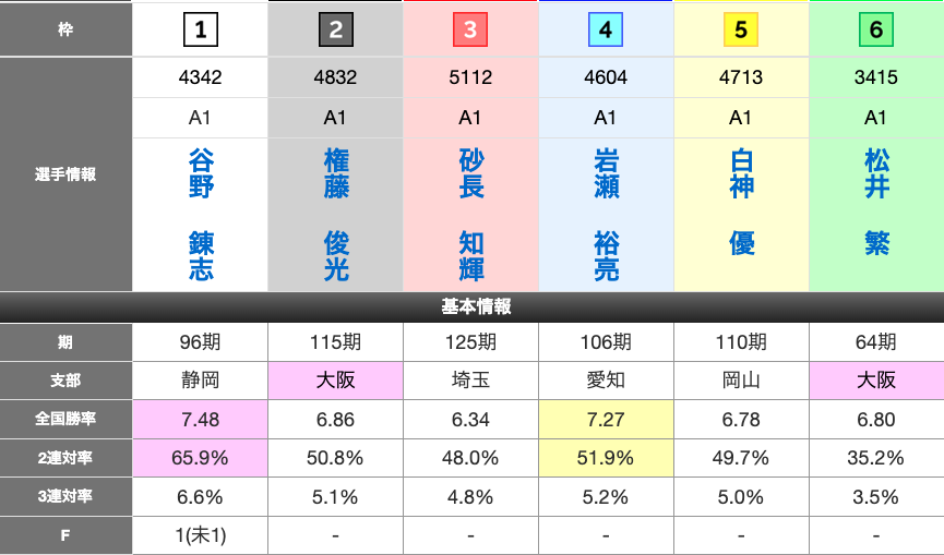そして1号艇谷野と3号艇砂長を劣勢と見る。