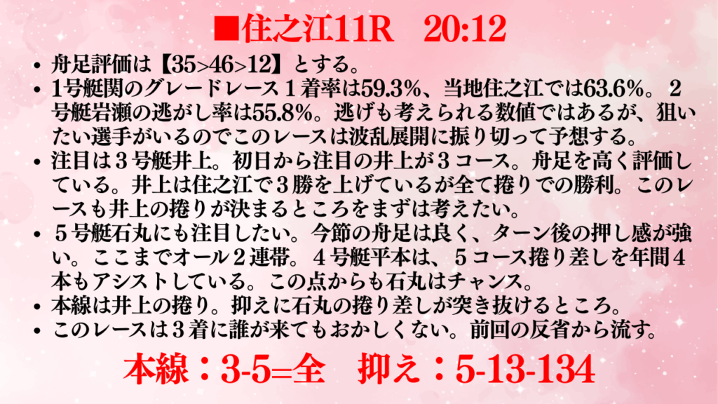 よってこのレースは井上狙い。関が負けるところを予想します。