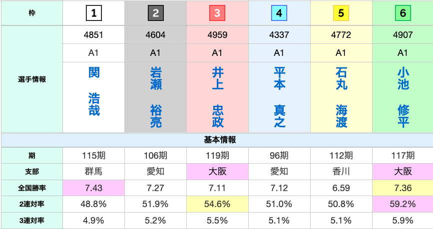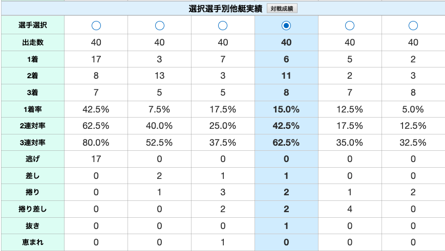 2号艇岩瀬の逃がし率は55.8%。まぁ、逃げも普通にあり得る数値だとは思うけどね。