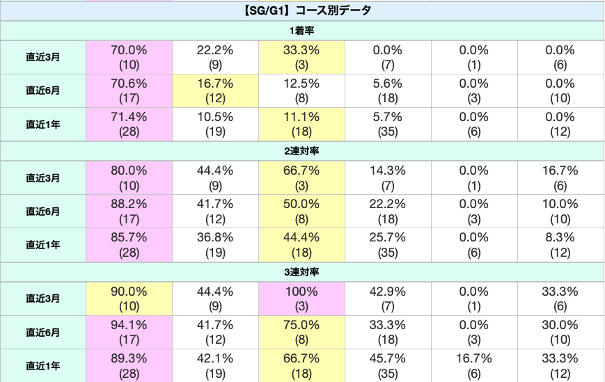 新田は71.4%ほどの1着率となるが、当地津では86.1%と高い。