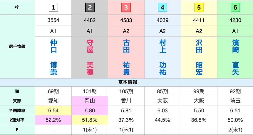 仲口のイン戦で2号艇が地元の守屋となるこのレース。