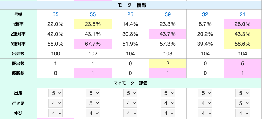 会員登録すると、モーター評価値やメモ・選手メモを残せるようになります。