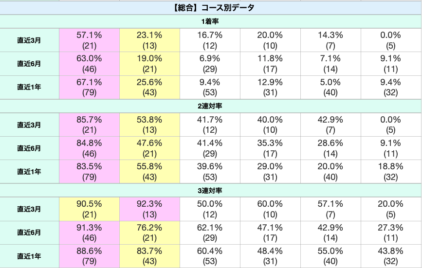 イン仲口の1着率は決して高いとは言えない数値だ。