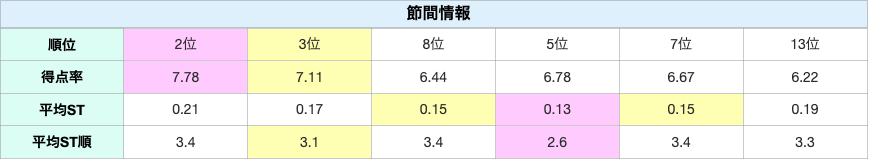 仲口のSTはF2の濱崎よりも悪いものとなっている。