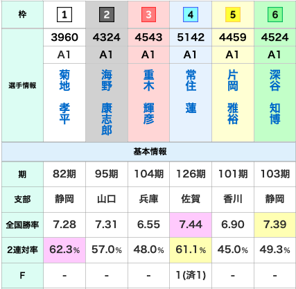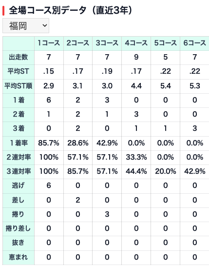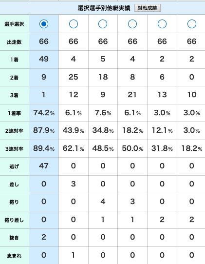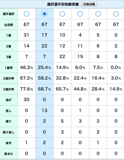この様に、前二人は3コースの捲りが決まりやすいという数値を持っている。