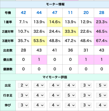 会員登録すると、モーター評価値やメモ・選手メモを残せるようになります。