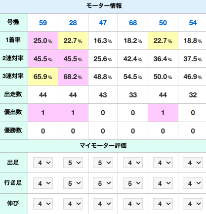 会員登録すると、モーター評価値やメモ・選手メモを残せるようになります。
