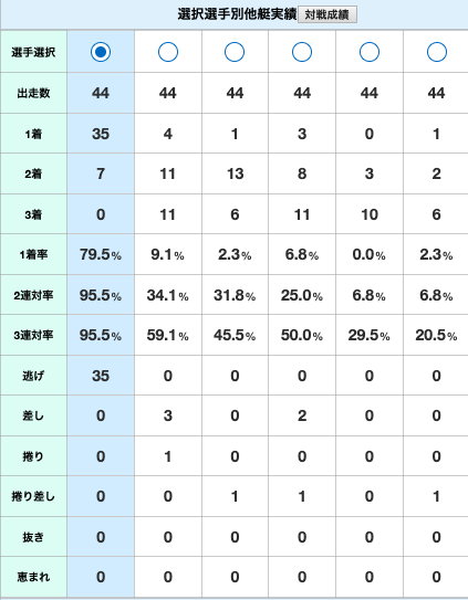 各選手のコース実績がこちら。