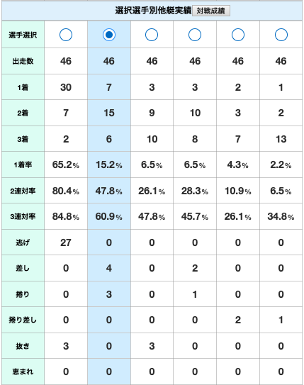 これが2号艇深谷のカベ実績。