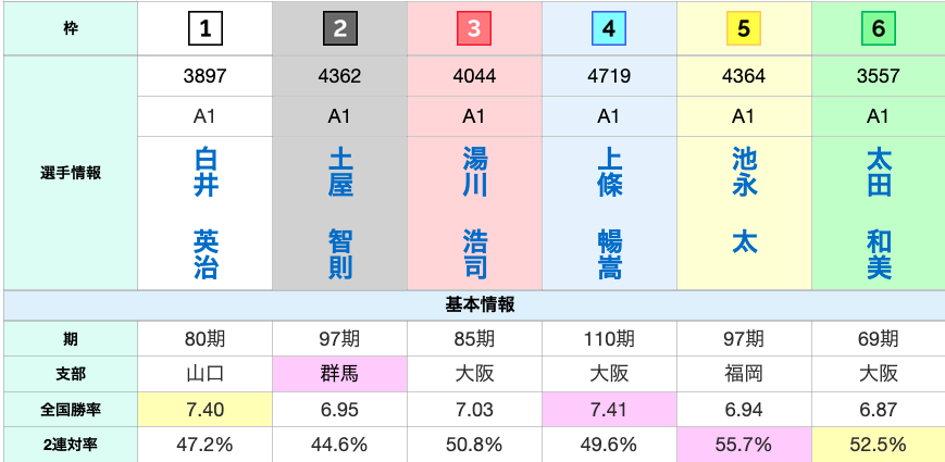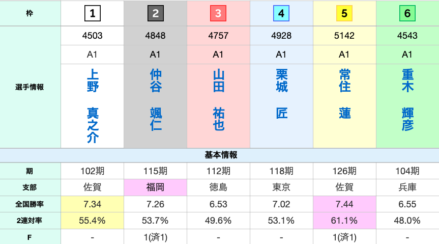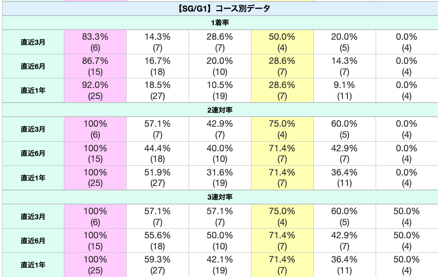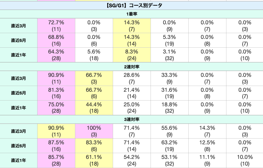というか、仲谷や山田よりも良い3連対率となっており、連に絡む可能性が十分あるということが分かる。
