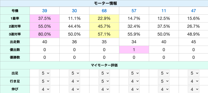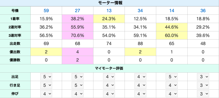 会員登録すると、モーター評価値やメモ・選手メモを残せるようになります。