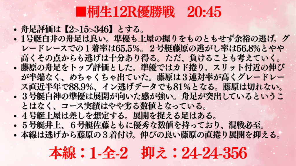 今回は桐生G1の優勝戦を予想します!