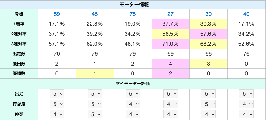 会員登録すると、モーター評価値やメモ・選手メモを残せるようになります。