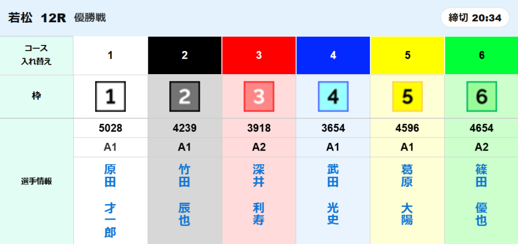 今回は、若松12Rの優勝戦を予想していきます。