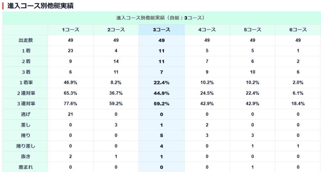 ③深井選手の3コース勝率22%。差し1本・捲り5本・捲り差し4本の実績。このレースは捲りに行くと想定して予想していきたい。