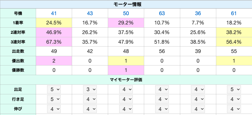 会員登録すると、モーター評価値やメモ・選手メモを残せるようになります。