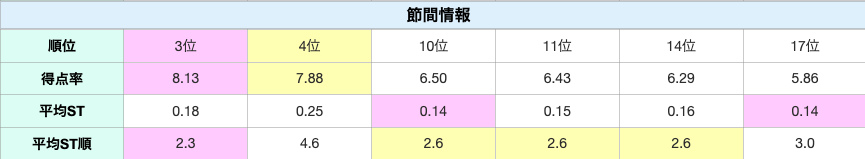.25平均は悪すぎる。もちろんST順も下がっている。