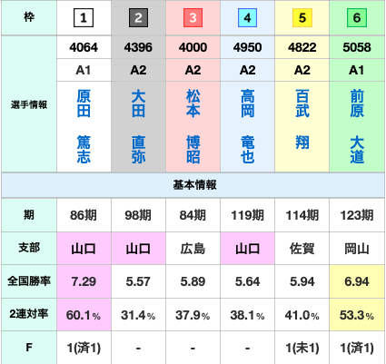 5号艇百武はこのメンバーの中で最も悪い数値と判断する。