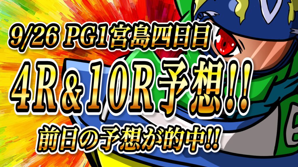 おはようございます。ミナトです。昨日は準優三つを予想し、12Rが的中となりました。宮島12R 1-4-2 14.0倍 今回は最終日12R【優勝戦】を予想しました! 【最近の的中報告】9/14 鳴門7R 2-6-4 23.1倍9/15 鳴門12R 1-4-6 6.2倍9/16 若松9R 1-5-2 ... -
